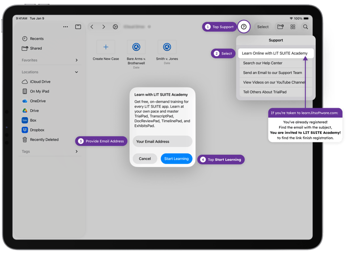 LIT SUITE Academy is our interactive, on-demand training platform designed specifically for lawyers, paralegals, and legal professionals! Registration is available to anyone with a LIT SUITE subscription by signing up through any LIT SUITE app.