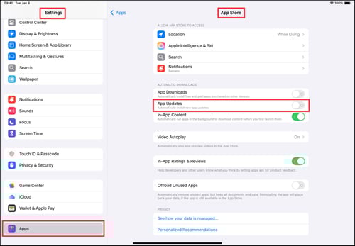 Turn on App Updates under Automatic Downloads.